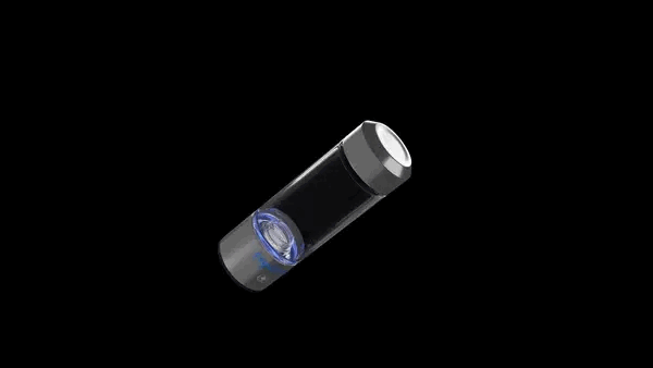 Lorsque vous remplissez la bouteille d’eau et appuyez sur le bouton, une plaque en titane et platine sépare l’eau en oxygène et hydrogène. Le processus prend environ 2 à 3 minutes.