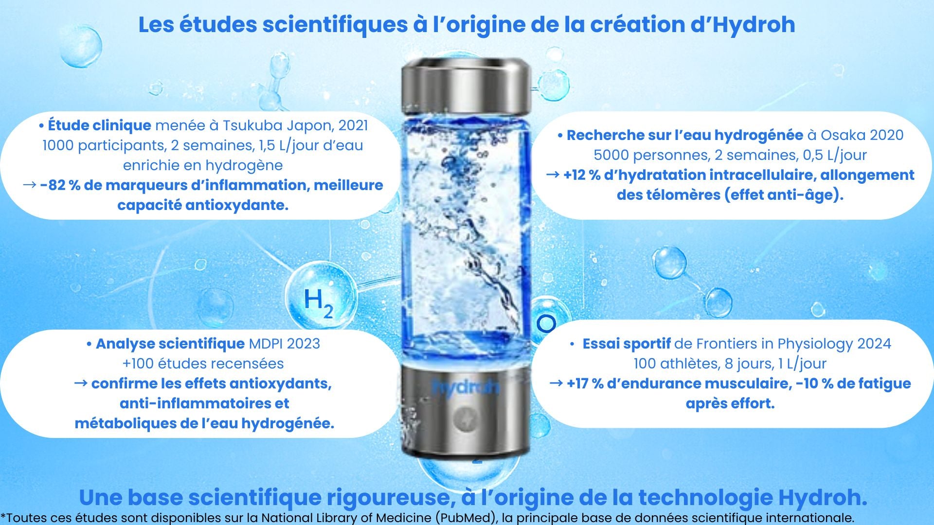 Filtrez et infusez votre eau avec de l'hydrogène, un puissant antioxydant avec plus de 1400 études publiées depuis 1960
