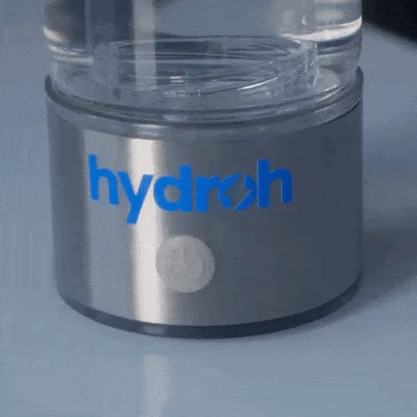 Lorsque vous remplissez la bouteille d’eau et appuyez sur le bouton, une plaque en titane et platine sépare l’eau en oxygène et hydrogène. Le processus prend environ 2 à 3 minutes.